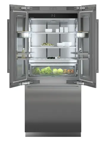 Cơ chế SoftSystem của Liebherr đảm bảo cửa đóng nhẹ nhàng, ngăn ngừa chai lọ và thực phẩm rơi ra ngay cả khi kệ cửa đầy.