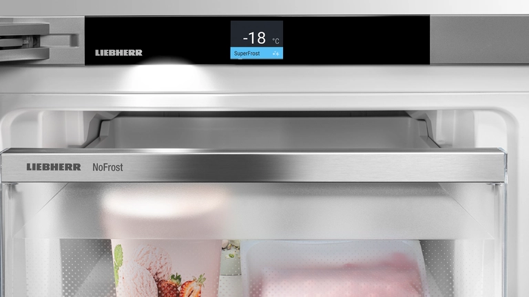 Công nghệ SuperFrost của Liebherr giúp đông lạnh thực phẩm mới nhanh chóng ở -32°C và tiết kiệm năng lượng khi trở về nhiệt độ bình thường.